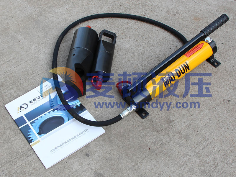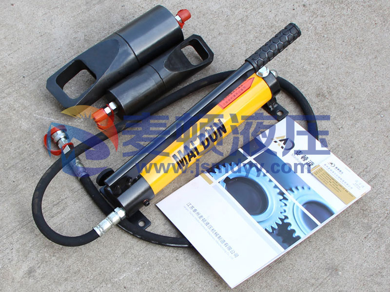 3、壓動手動油泵,使劈刀頂出推進至螺母,當劈刀頂進螺母二分之一時,須小心的壓動手泵,以免用力過猛,劈刀快速將螺母劈開損傷螺栓絲扣。
