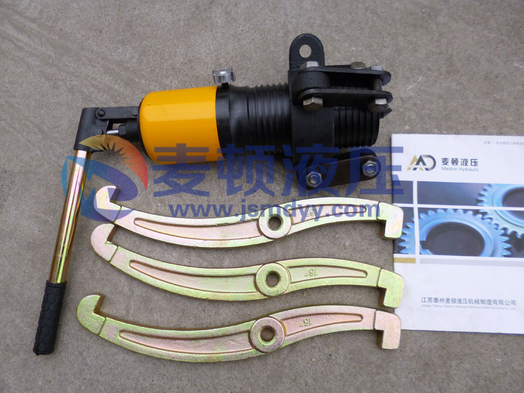4、液壓拉馬的活塞起動桿有效距只有50mm,故使用時伸距不得大于50mm,當沒有拉出時停止,松開回油閥門,讓活塞起動桿縮回去,調好后第二次再重復1、2、3步驟拉出為止。