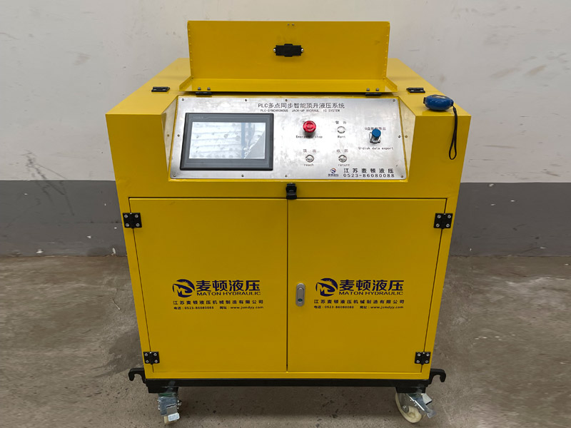 ● 本系統中液壓泵站利用開關閥來控制流量,依靠調節開關閥的開關頻率來改變流量,達到使油泵的輸出流量連續可調的目的,配以適當的電控裝置,組成壓力和位移閉環控制,就可以精確控制各臺液壓千斤頂在升降時同步,稱重過程中的負載均衡。